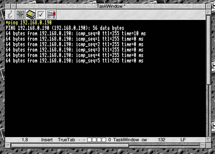 Later, if you are connected to the internet, you will be able to enter the command "ping www.bbc.co.uk" and you will see the IP address of one of the BBC's servers and how far (how long) away that server is.